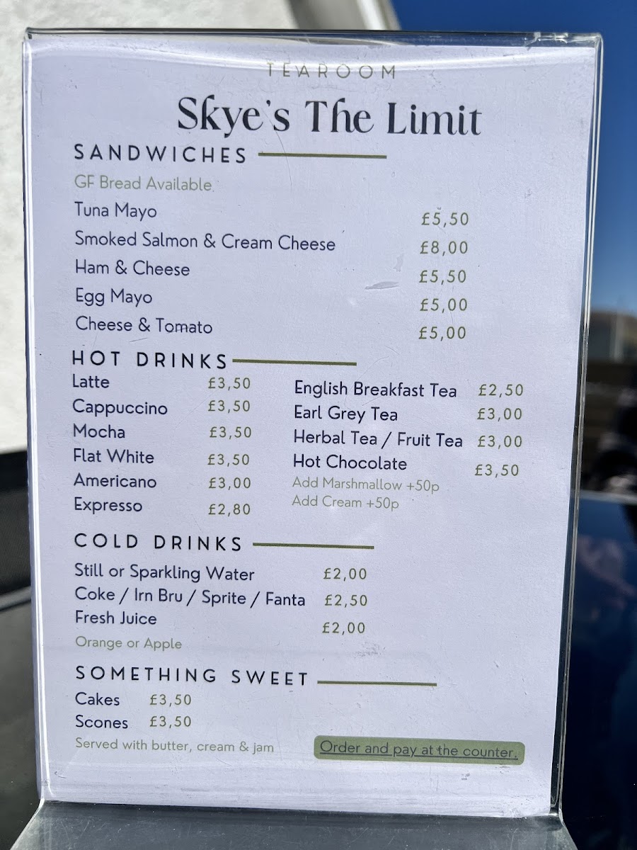 The menu features a range of options organized into several categories, suitable for various times of the day including breakfast, coffee breaks, and light to more substantial meals. Visitors can expect offerings that cater to quick orders or casual dining.